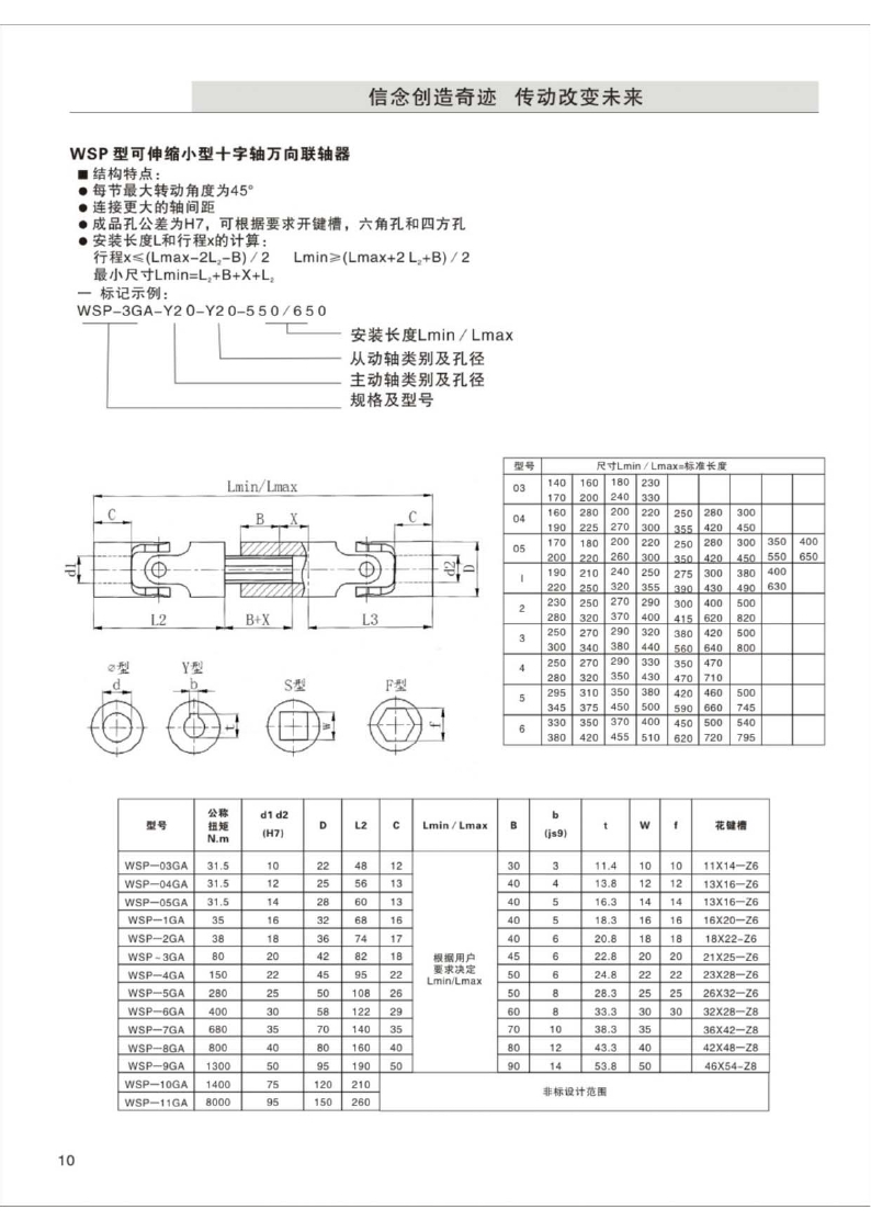 WSP型可伸縮小型十字軸萬向聯(lián)軸器